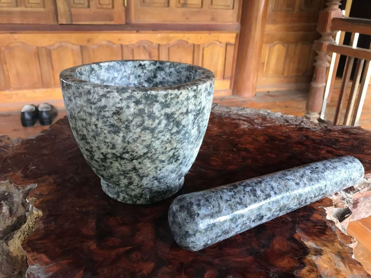 • Chày cối đá làm thủ công từ đá cuội